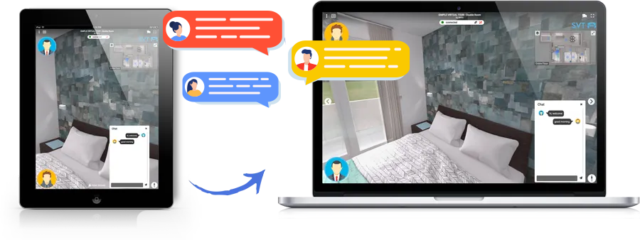 Mời mọi người tham gia triển lãm, hay tour tham quan của bạn bằng cuộc gọi video/âm thanh và trò chuyện.